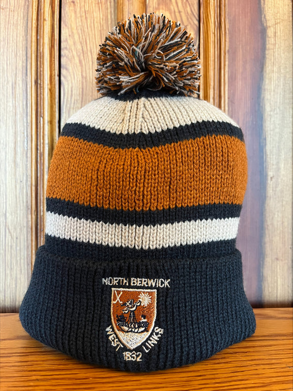 Chunky knit pull on hat, fleece lining with North Berwick West Links 1832 embroidered logo.