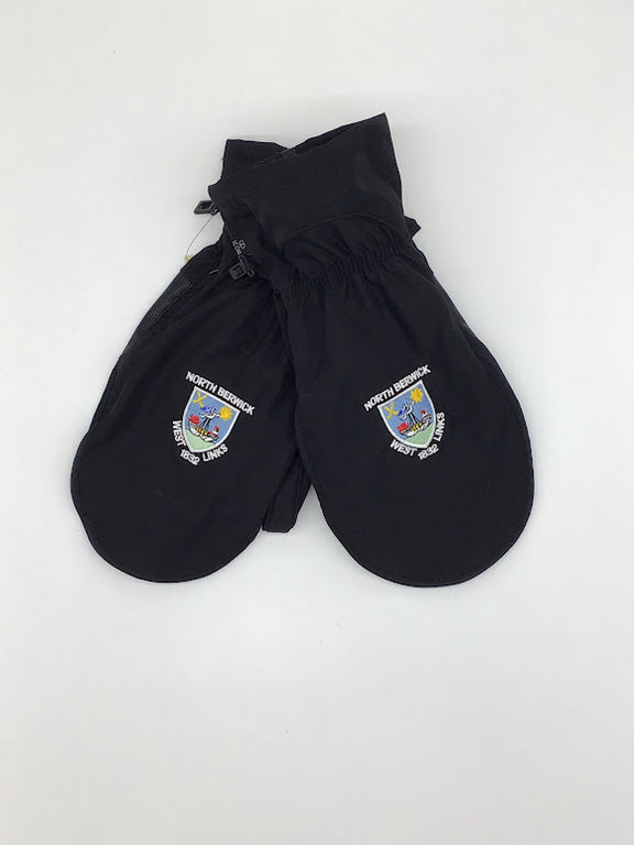 Microfibre, fleece lined mitt in black with rubberized palm grip and inner pocket for hand warmer.