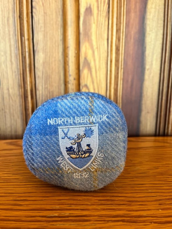 Handcrafted expertly in Scotland and made with Harris Tweed in an East Lothian inspired plaid with navy plush fleece lining and a Fyfe Golf black tag label.